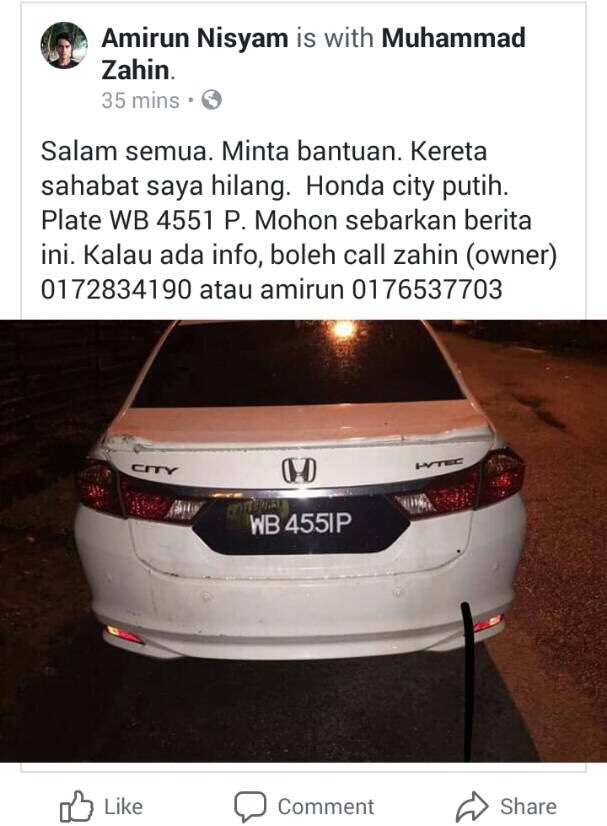Honda City Dilarikan Aduan Kereta Hilang Lost Car