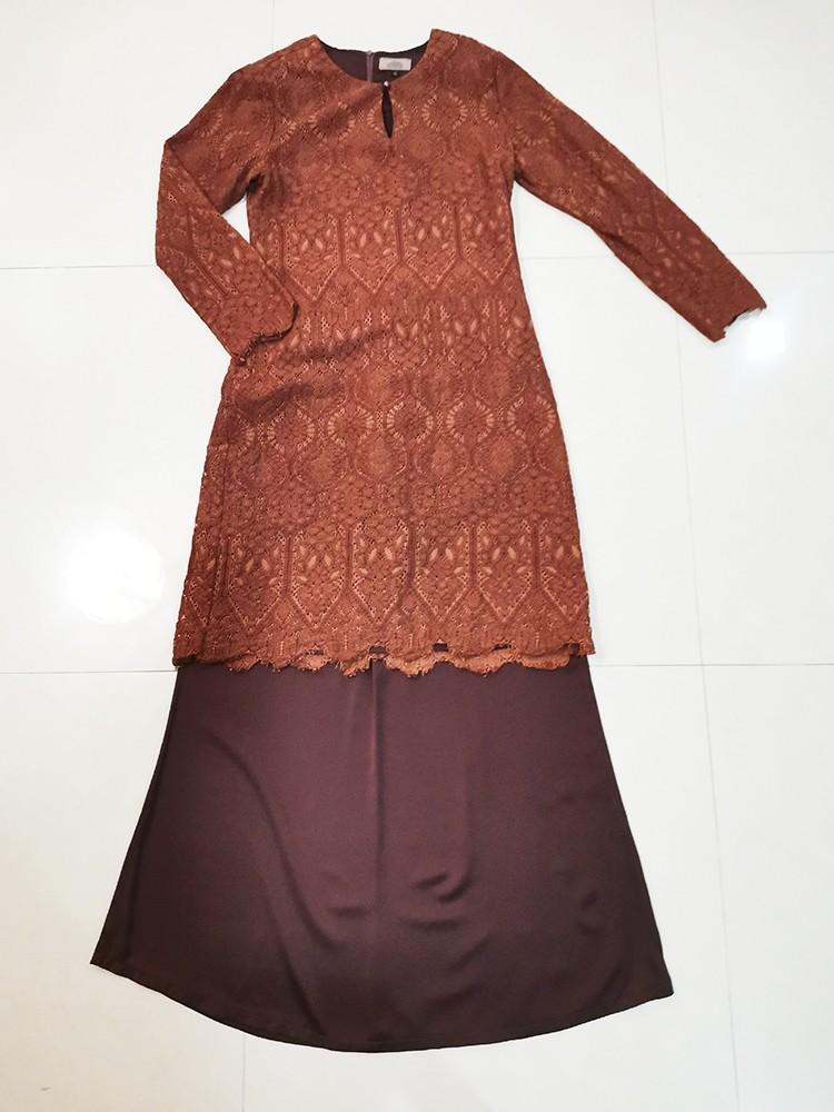 Baju Kurung Moden Lace Coklat