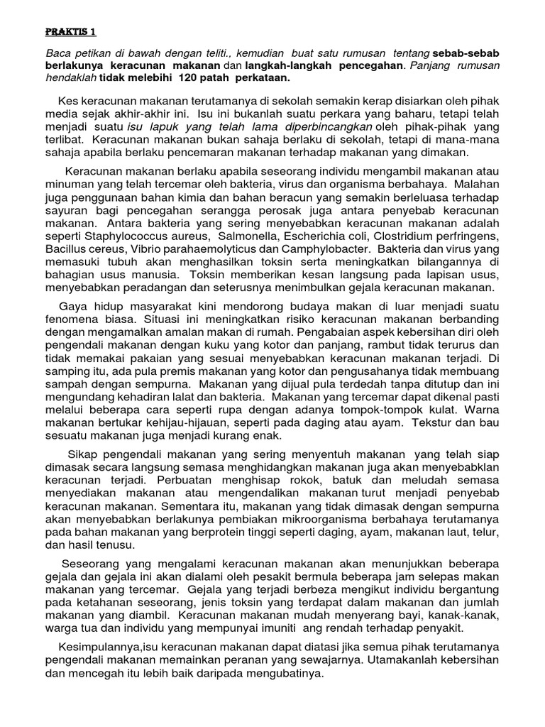 Karangan Punca Dan Akibat Gerai Makanan Yang Kotor
