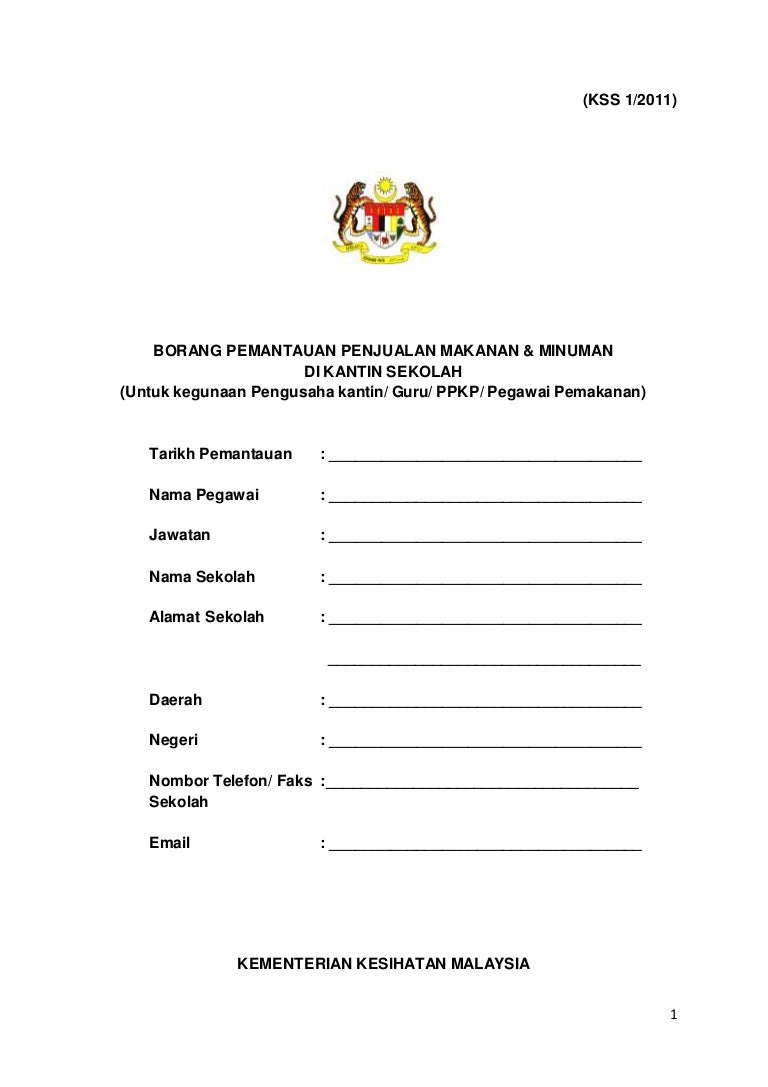Borang Pemantauan Penjualan Makanan Dan Minuman Kss1a 2018